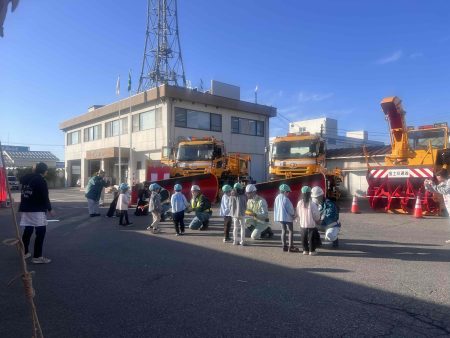 また、郡山国道事務所長様から弊社社員の除雪作業の功績が評価され表彰状をいただき、応援に来てくださった学校法人こばと幼稚園児の皆さまにトミカのブルドーザーの玩具をプレゼントいたしました。